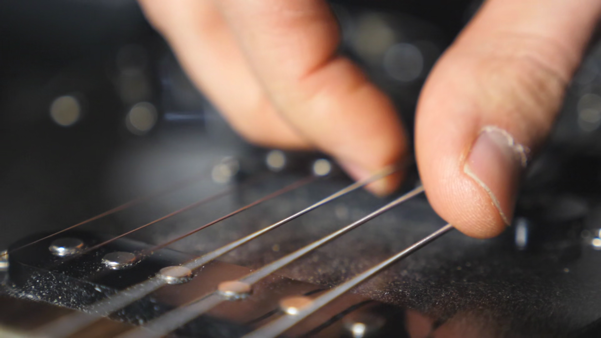 Close Up Of Male Fingers Touching Strings Of A Musical Instrument Chords Being Strummed And Vibrating Hand Of Man Practicing To Play OnÂ