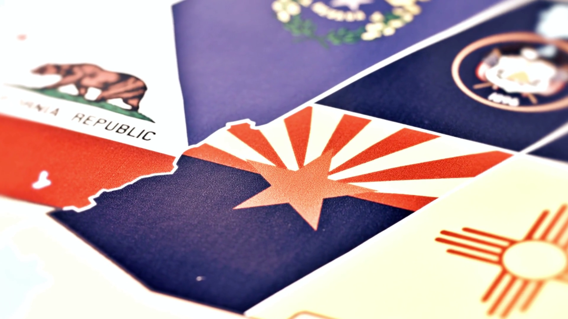 Close Up Of State Flags Including Arizona California Utah And NevadaÂ