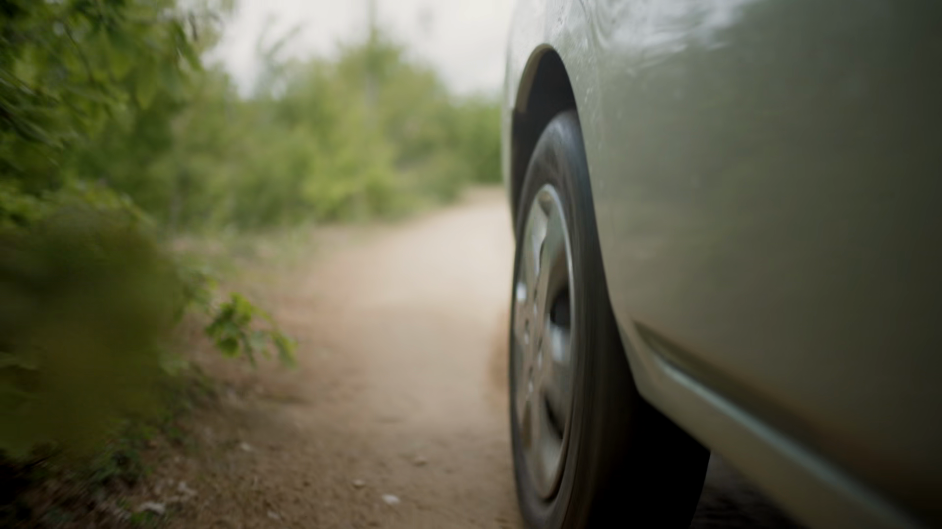 Closeup Of Suv Tire Driving On A Dusty Dirt Road Through A Forest Capturing Adventure And Exploration In A Rugged Outdoor SettingÂ