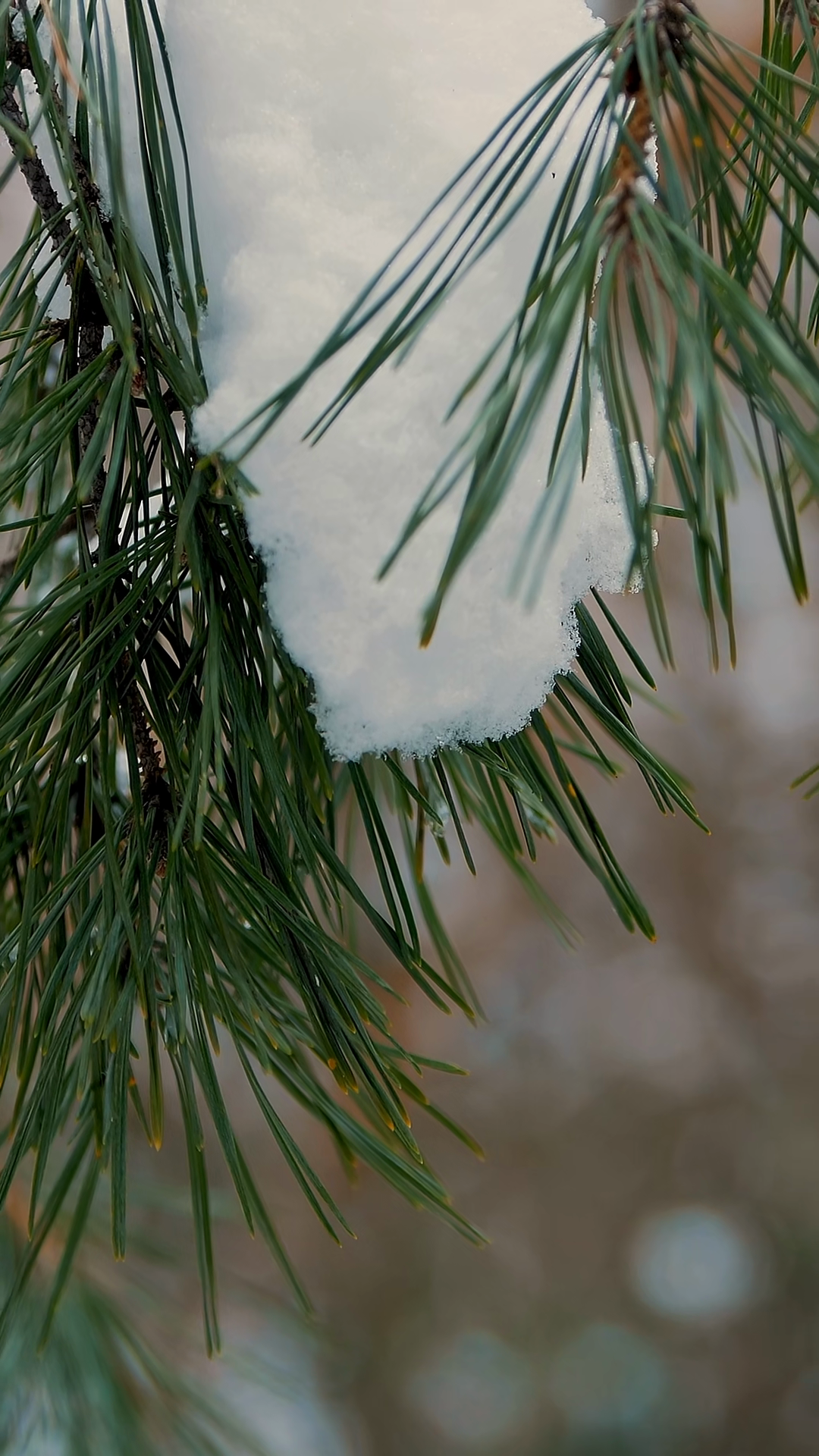 Closeup On The Background Of The Winter Forest The Pine Needles On The Branches Of The Pine Are Shown The Snow Lies On The BranchesÂ