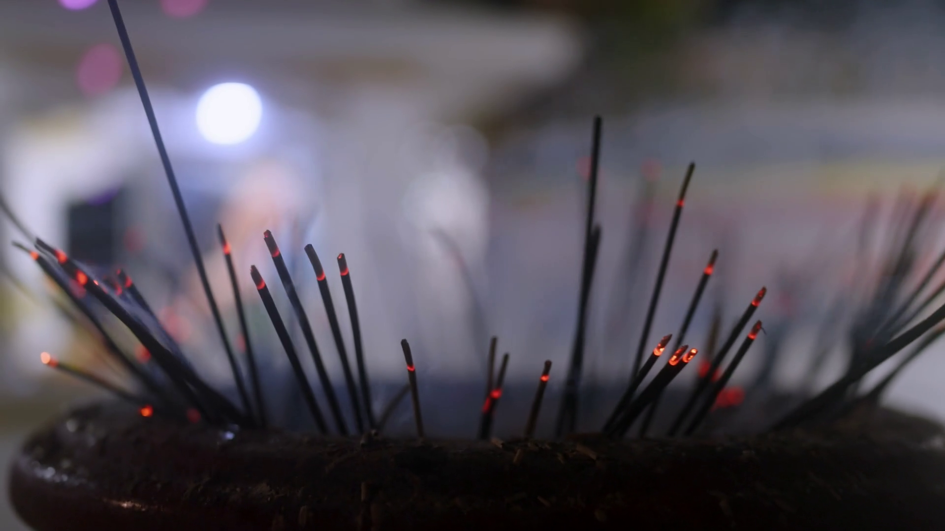 Closeup View Of Lit Incense Sticks At Buddhist Temple Glowing Embers At Tips Fragrant Smoke Rises Offering Peaceful Ambiance For PrayerÂ