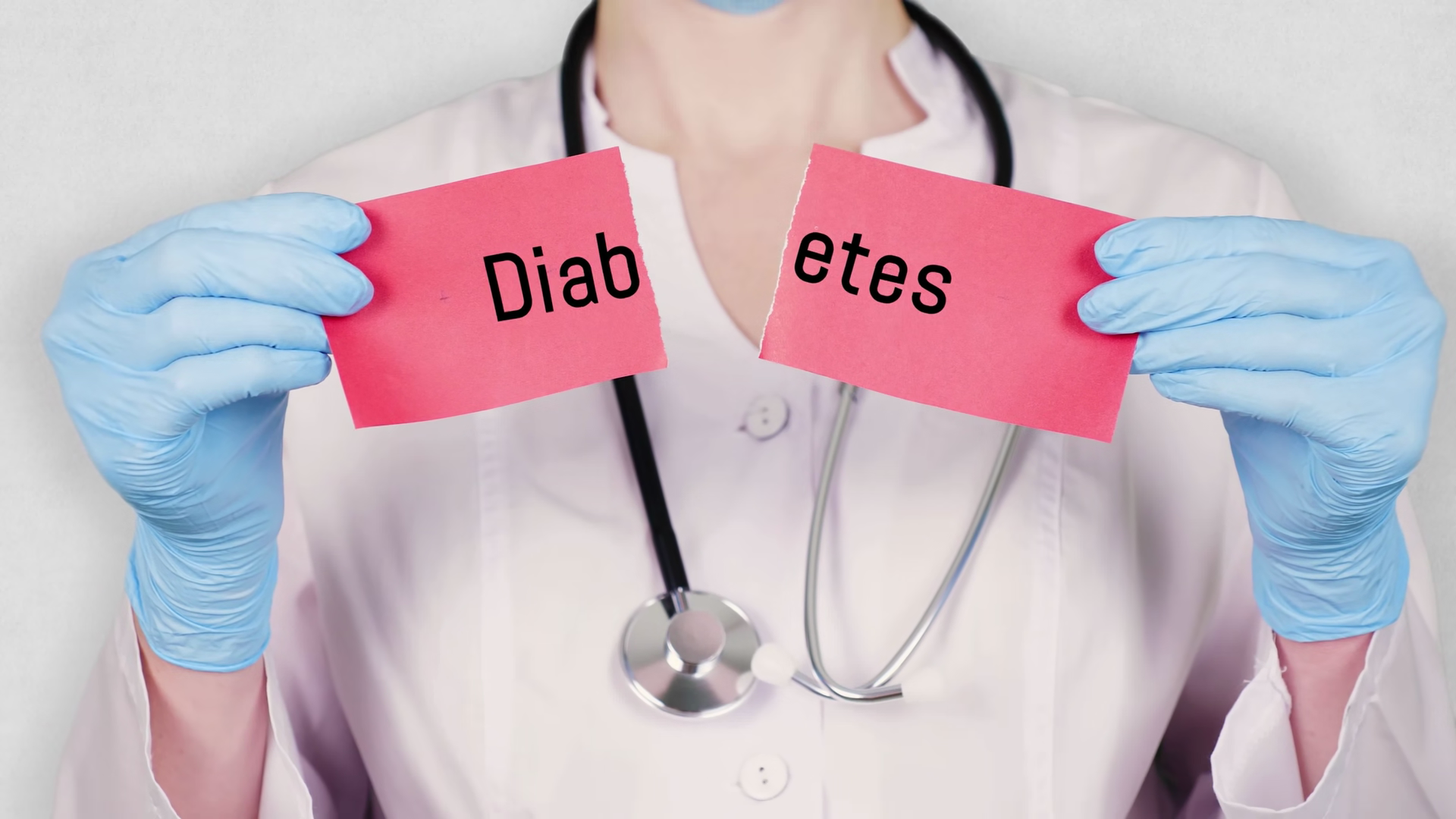 Closeup Hands In Blue Medical Gloves Hold And Tear Red Paper Card With An Inscription Diabetes Doctor Dressed In White Medical Uniform Has A StethoscopeÂ