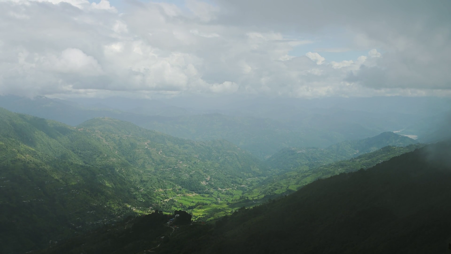 Clouds Moving Through A Valley In Mountain Scenery Low Lying Clouds Filling A Valley In The Himalayas In Lush Luscious Green GreeneryÂ