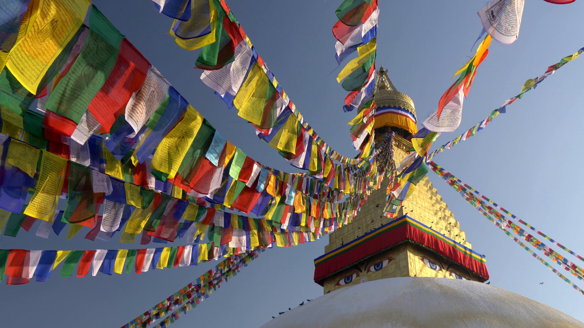 Colorful Flags With Buddhist Scriptures Inscribed On Them Hanging Tied To The Boudhanath Stupa In Kathmandu Nepal The Stupa Is Said ToÂ