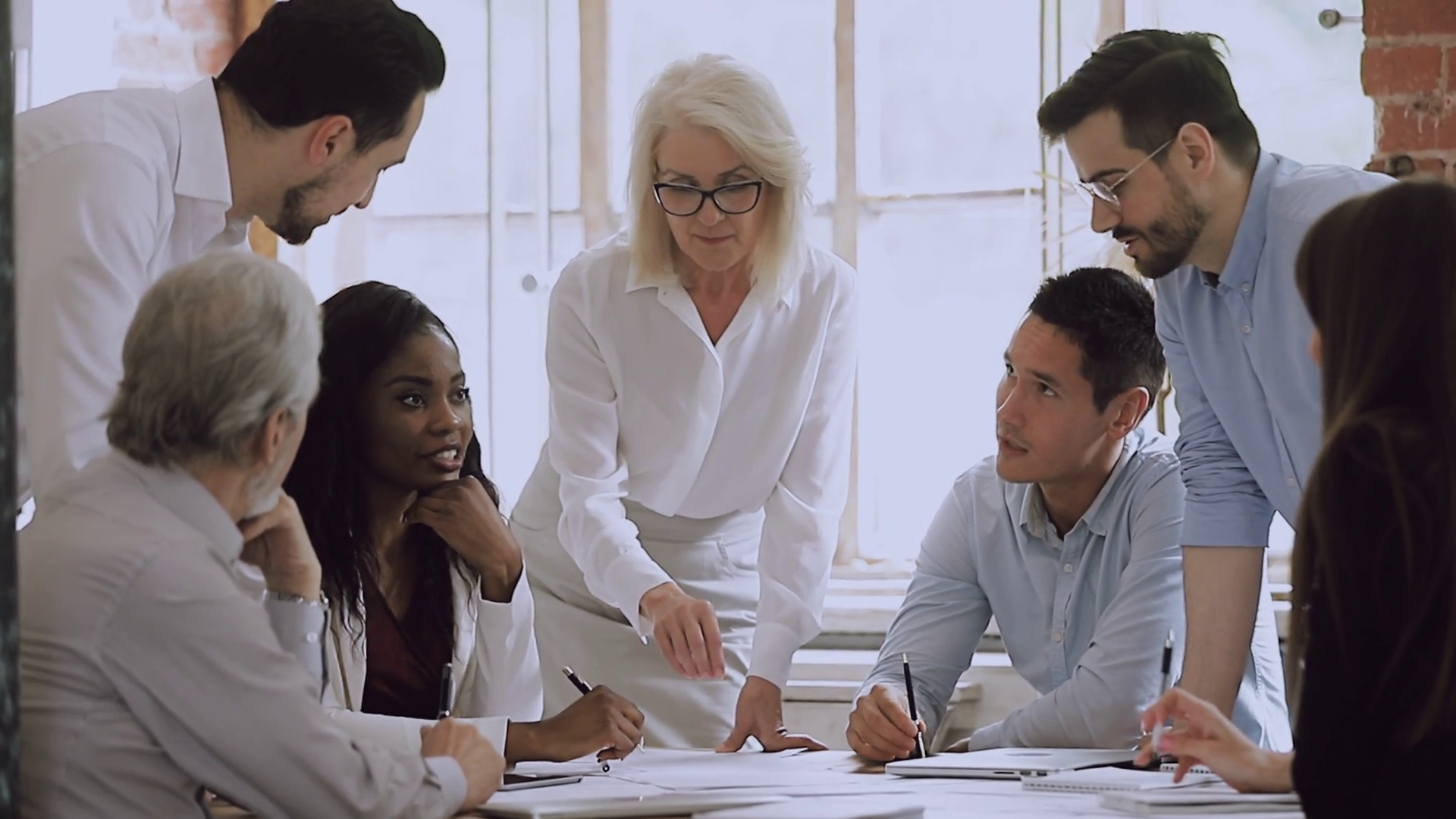 Confident Middle Aged Female Boss Holding Brainstorming Meeting With ExecutivesÂ