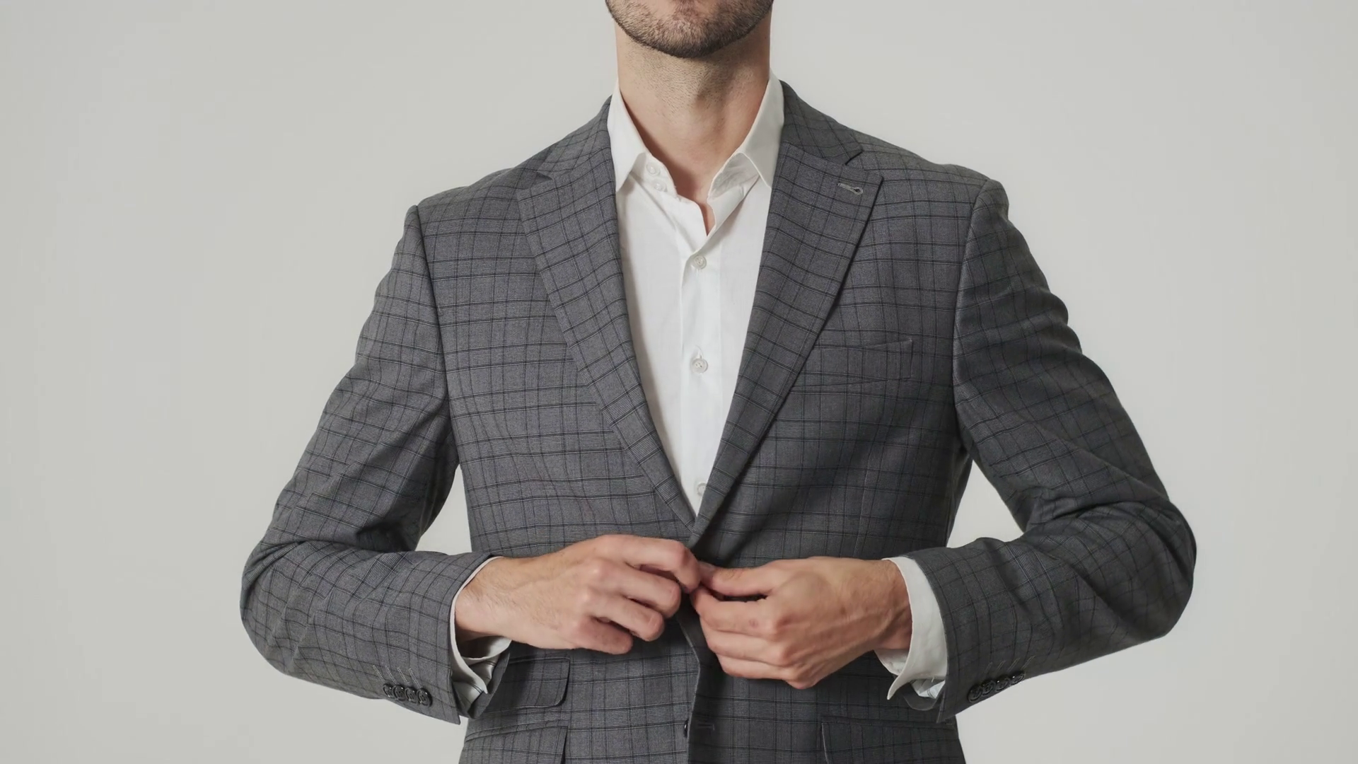 Cropped Video Of Young Business Man Isolated Over White Wall While Buttoning His Shirt And JacketÂ