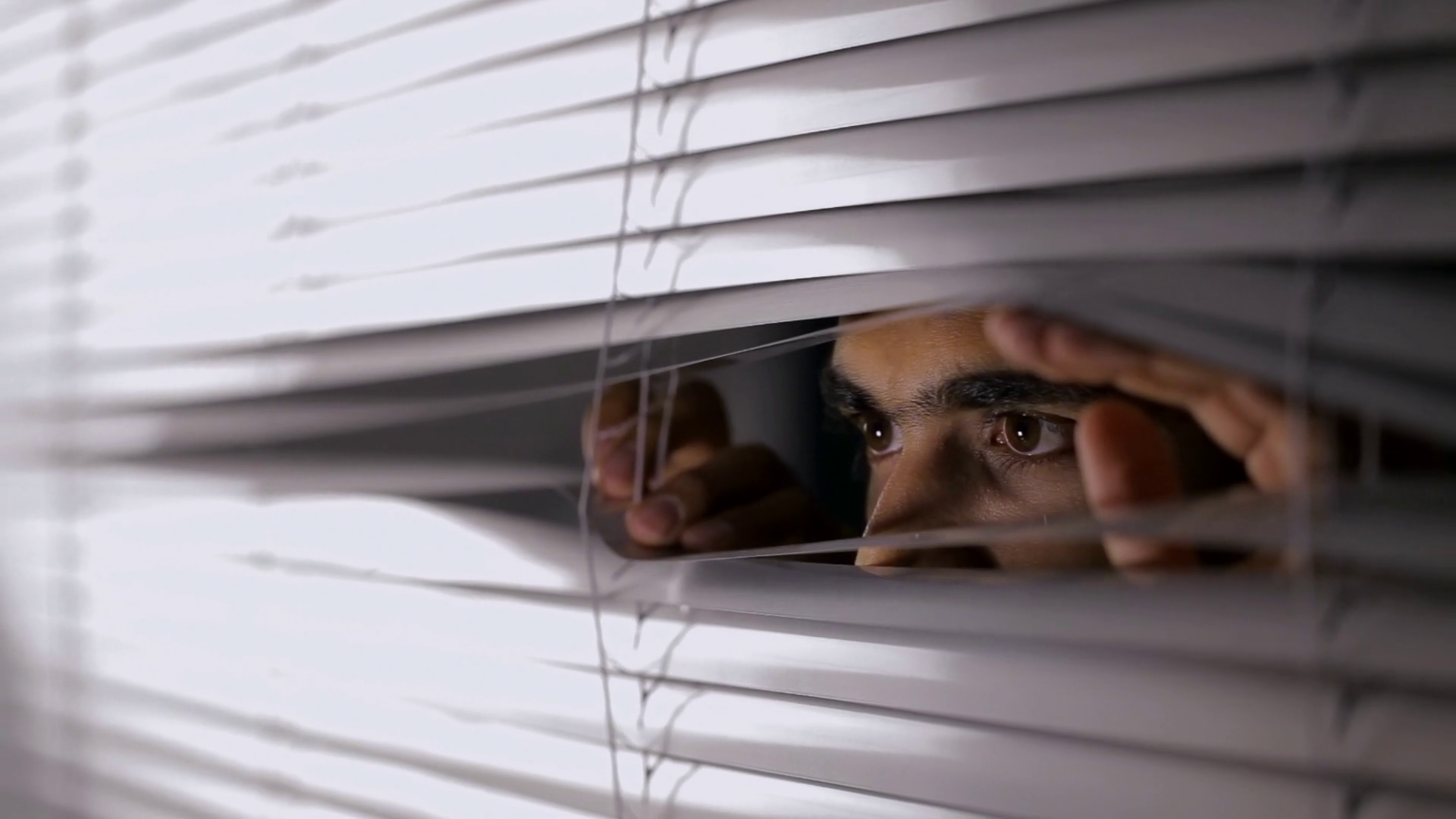 Cu Man Opening Blinds And Looking OutÂ