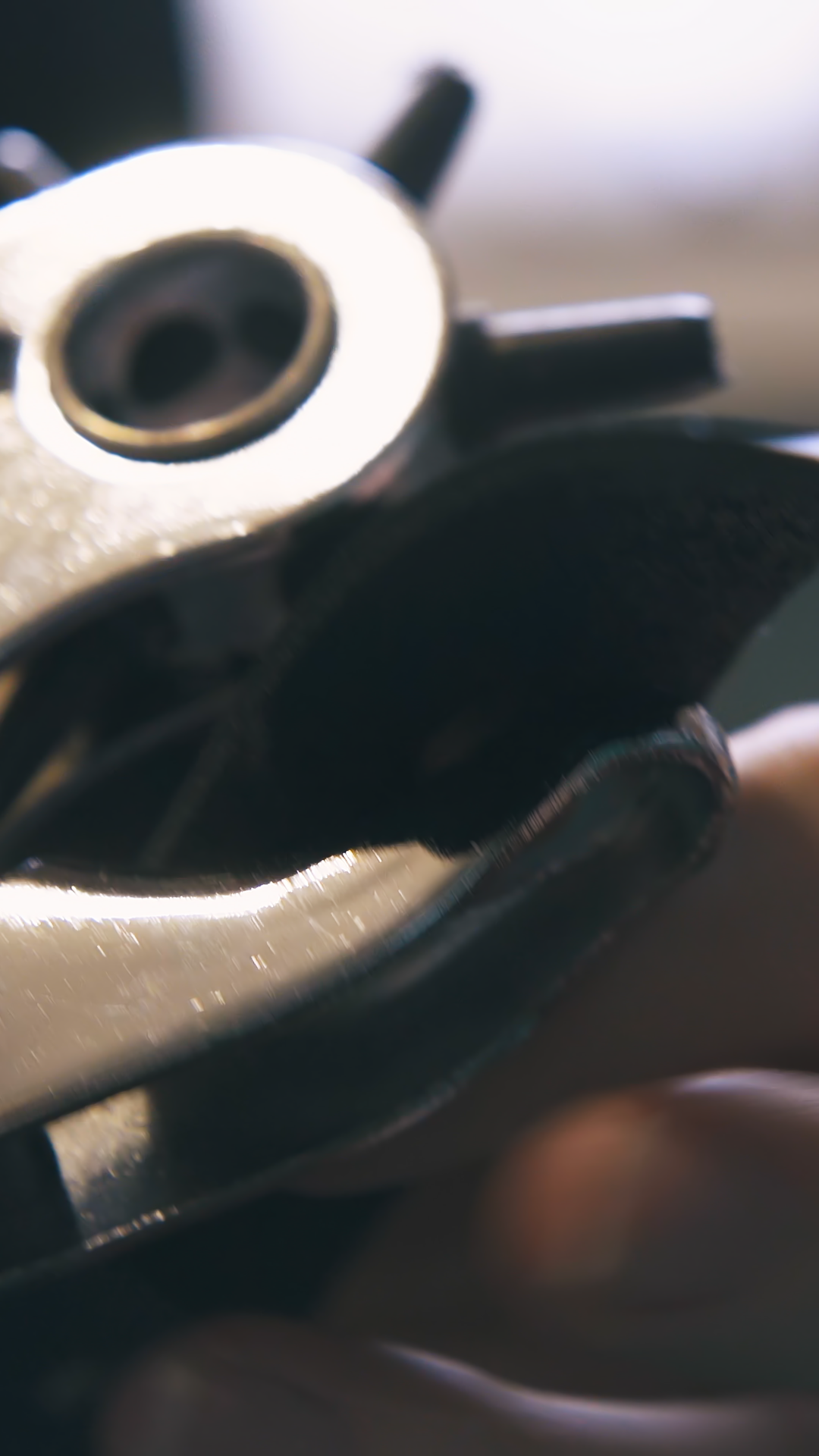 Cu Skilled Tailor Makes Holes In Fashionable Leather Belt With Special Punch Pliers In Workshop Extreme Close ViewÂ