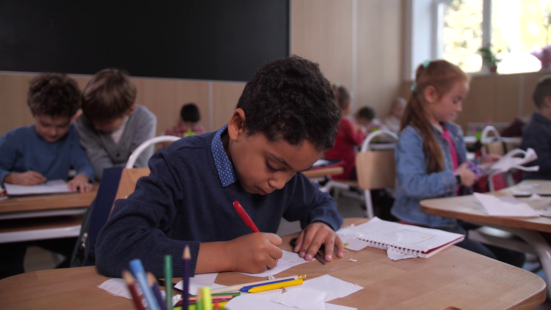 Enthusiastic Student Creating Art In Elementary SchoolÂ