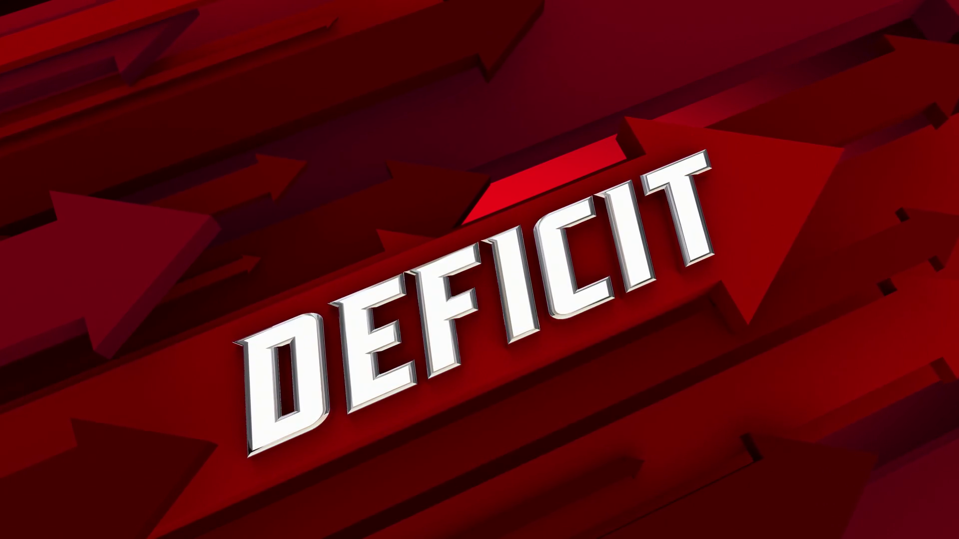 Deficit Increase Rising Red Arrows Up Debt Growth 3 D Animation
