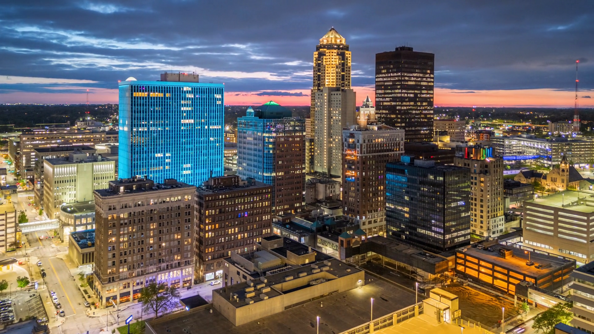 Des Moines Iowa Usa Downtown Cityscape At DuskÂ