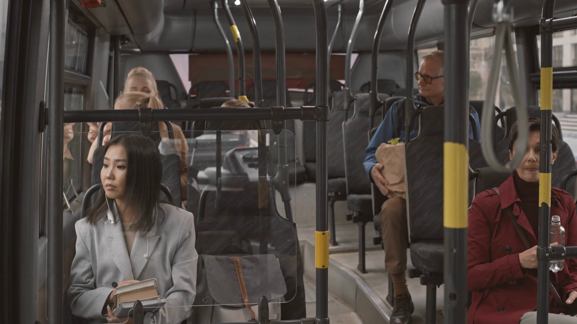 Diverse Younger And Older People Riding Bus Sitting At DaytimeÂ