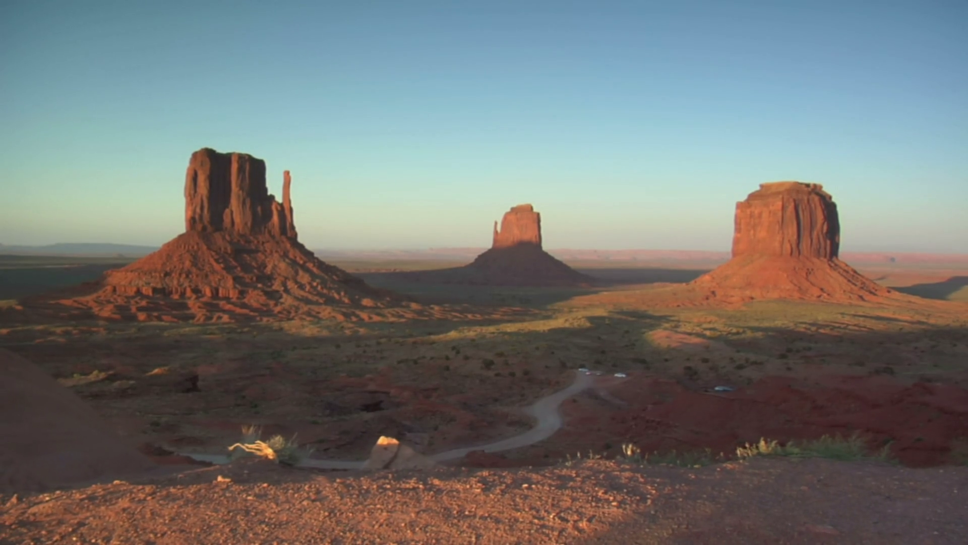 Dolly Shot Of Couple Sitting On Rocks Overlooking Monument ValleyÂ