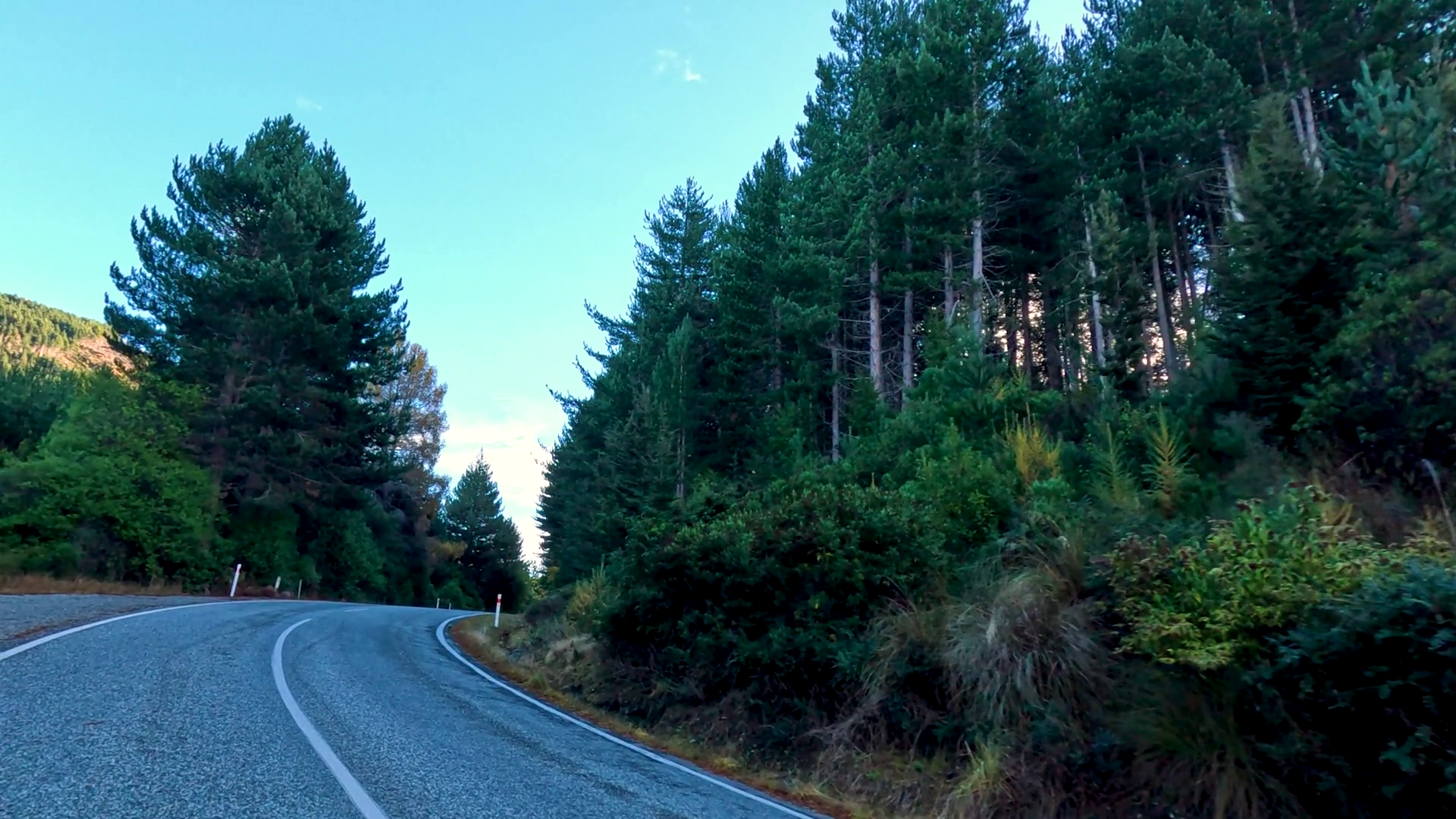 Driving Through Forested Curves Near Lake Wakatipu New ZealandÂ