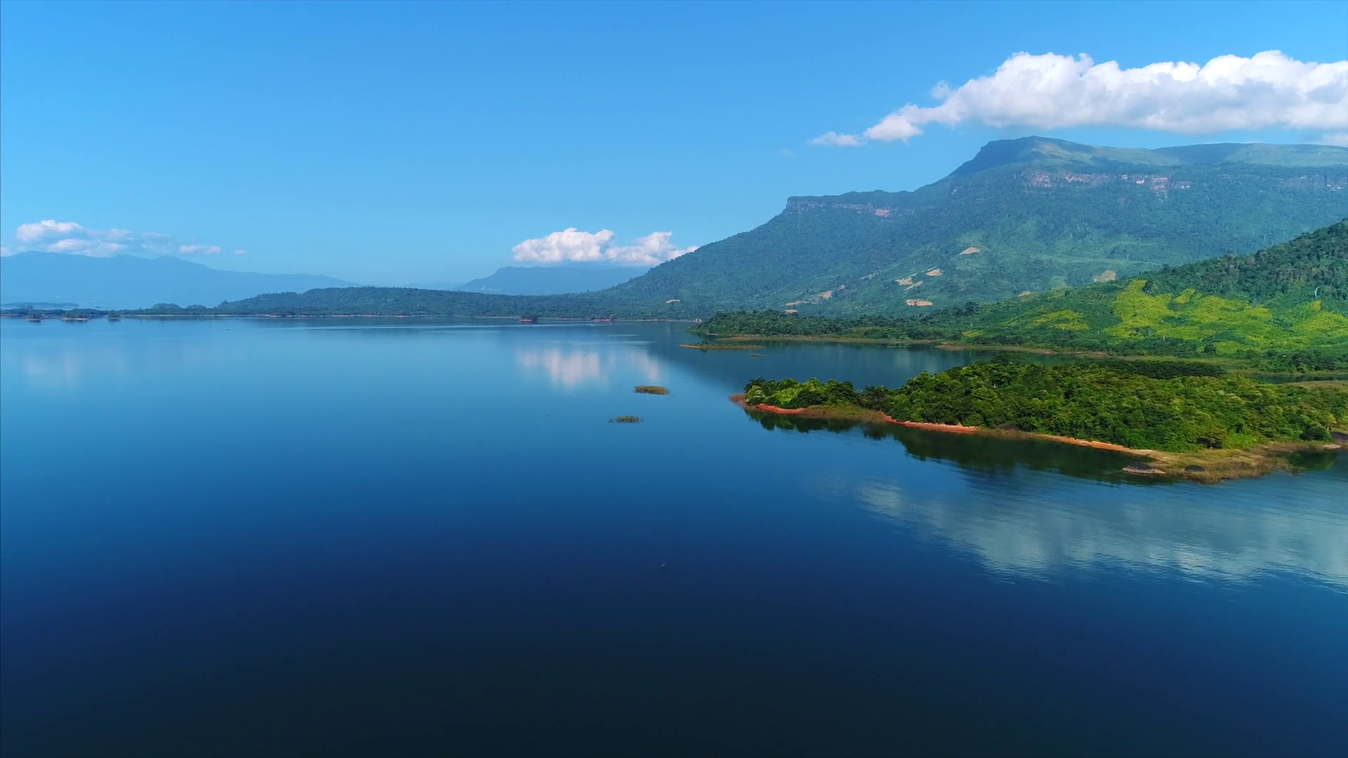 Drone Cinematic Asian Jungle Lake Laos Nam Ngum Reservoir Flyover DroneÂ