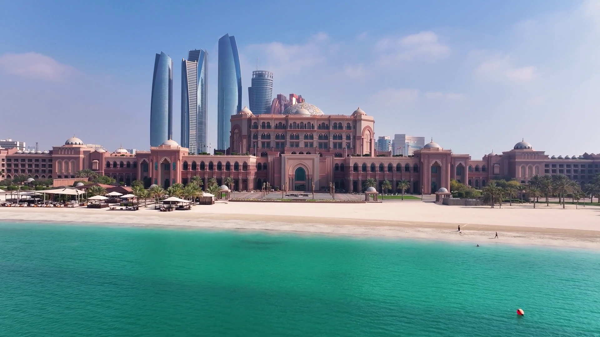 Dubai Uae 01 August 2025 Aerial View Of The Emirates Palace Hotel Its Sandy Beach And Towering Skyscrapers Under A Clear Blue SkyÂ