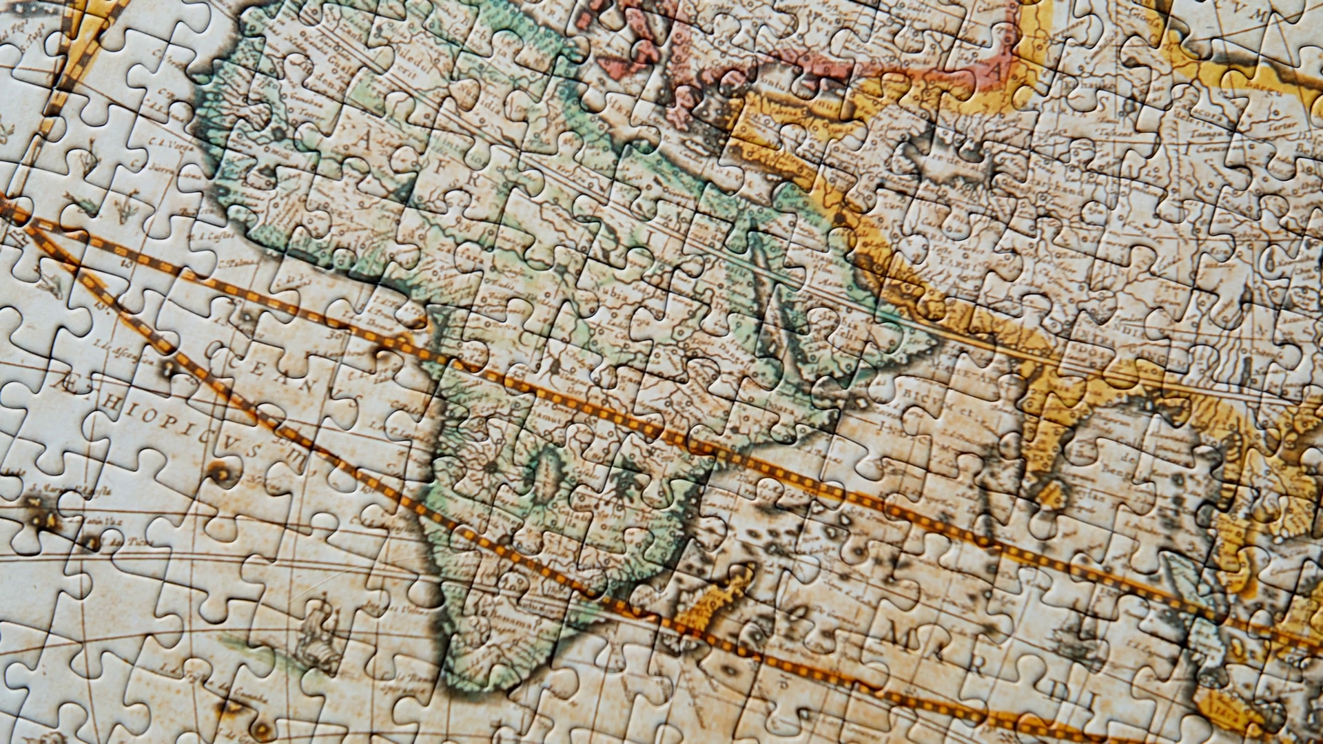 Dynamic View Finished Puzzle Displaying Vintage Global Chart Accurate Illustration Showing Shapes Of Asia Europe And Africa JigsawÂ