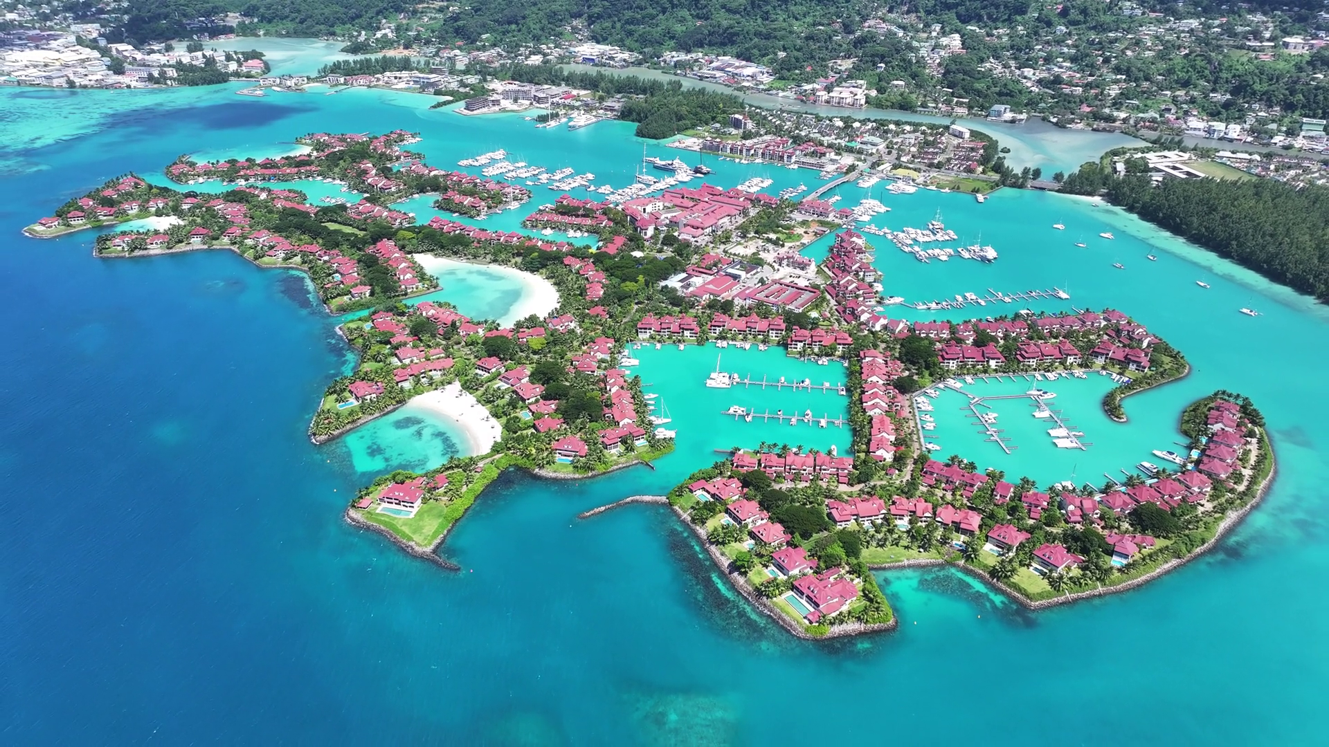 Eden Island At Victoria Mahe Island Seychelles Breathtaking Aerial View Of A Lush Tropical Coastline Scenery Coast Sky Clouds Seaside Summertime Seaside Beach Scenic CoastlineÂ