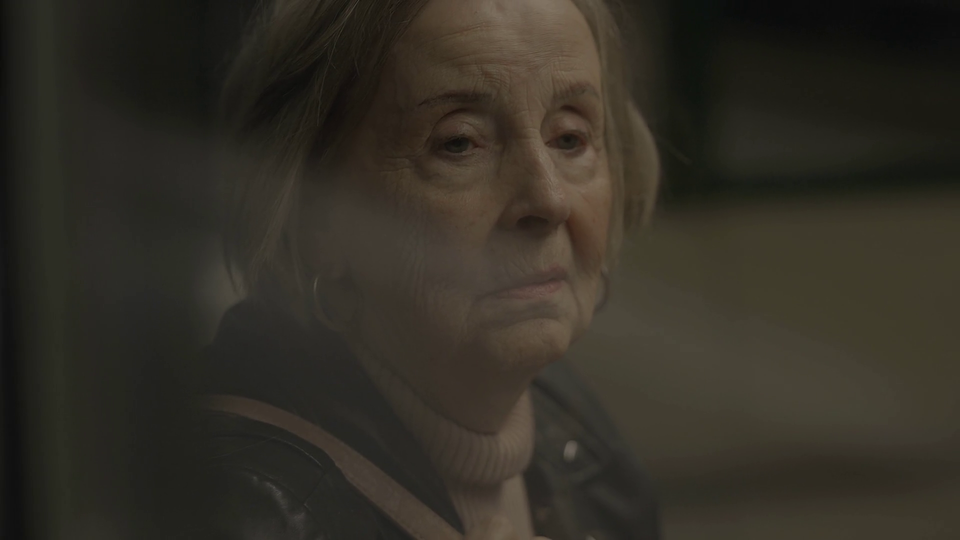 Elder Woman Sits With Quiet Determination At The Train Station At NightÂ