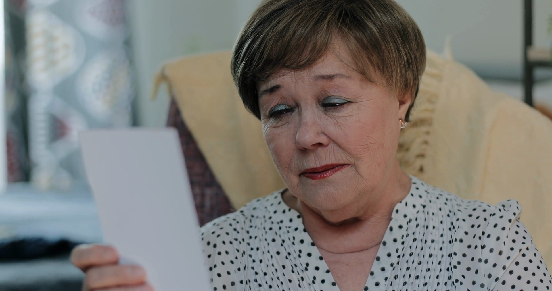 Elderly Woman Looking Sad And Crying While Holding And Looking At Photo Mature Lady Having Nostalgia While Sitting At Chair Concept OfÂ