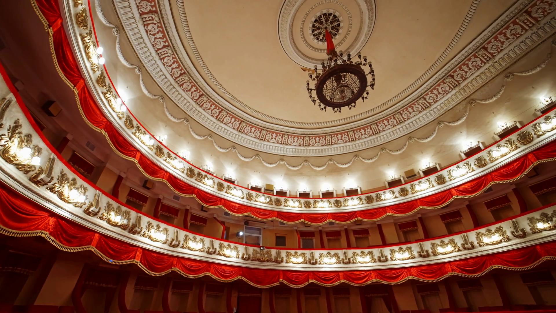 Empty Theater Because Of Pandemic Beautiful Interior Big Concert Hall With No People Lockdown TimeÂ