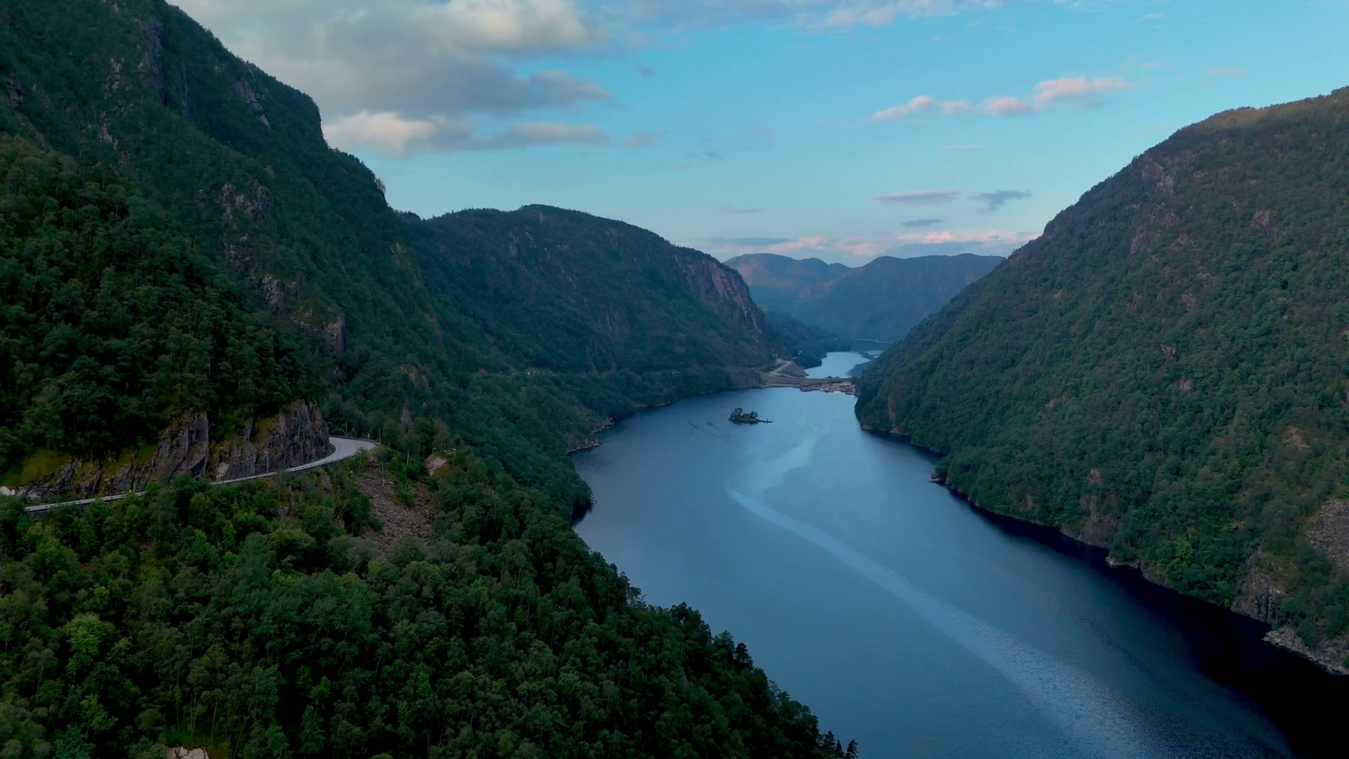 Experience The Breathtaking Beauty Of A Norwegian Fjord With Tranquil Waters Reflecting The Sky Surrounded By Towering Green Mountains AÂ