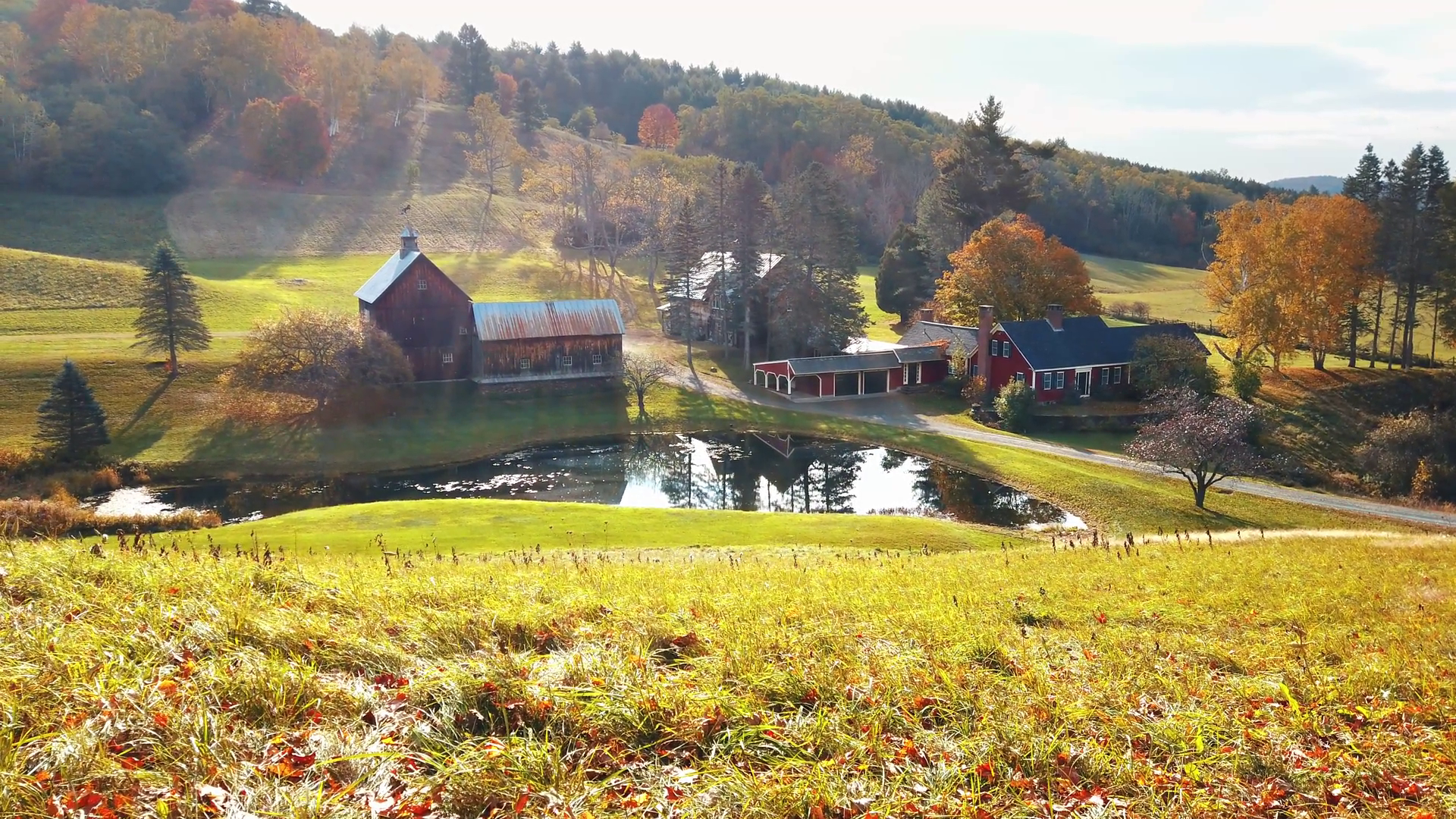 Farm House With Autumn Foliage In Vermont With Beautiful Colors 4kÂ