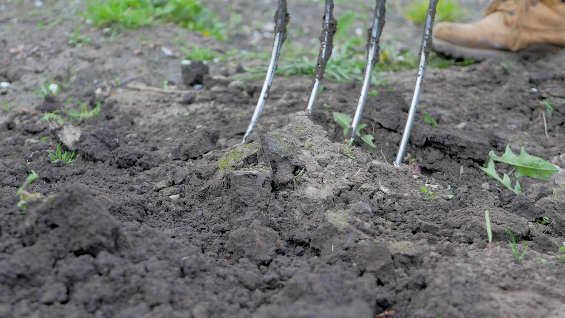 Farmer Turns Soil Using Pitchfork Which Makes Ground Looser And More Aerated Loose Soil Allows Water To Penetrate Deeply Roots Can SpreadÂ