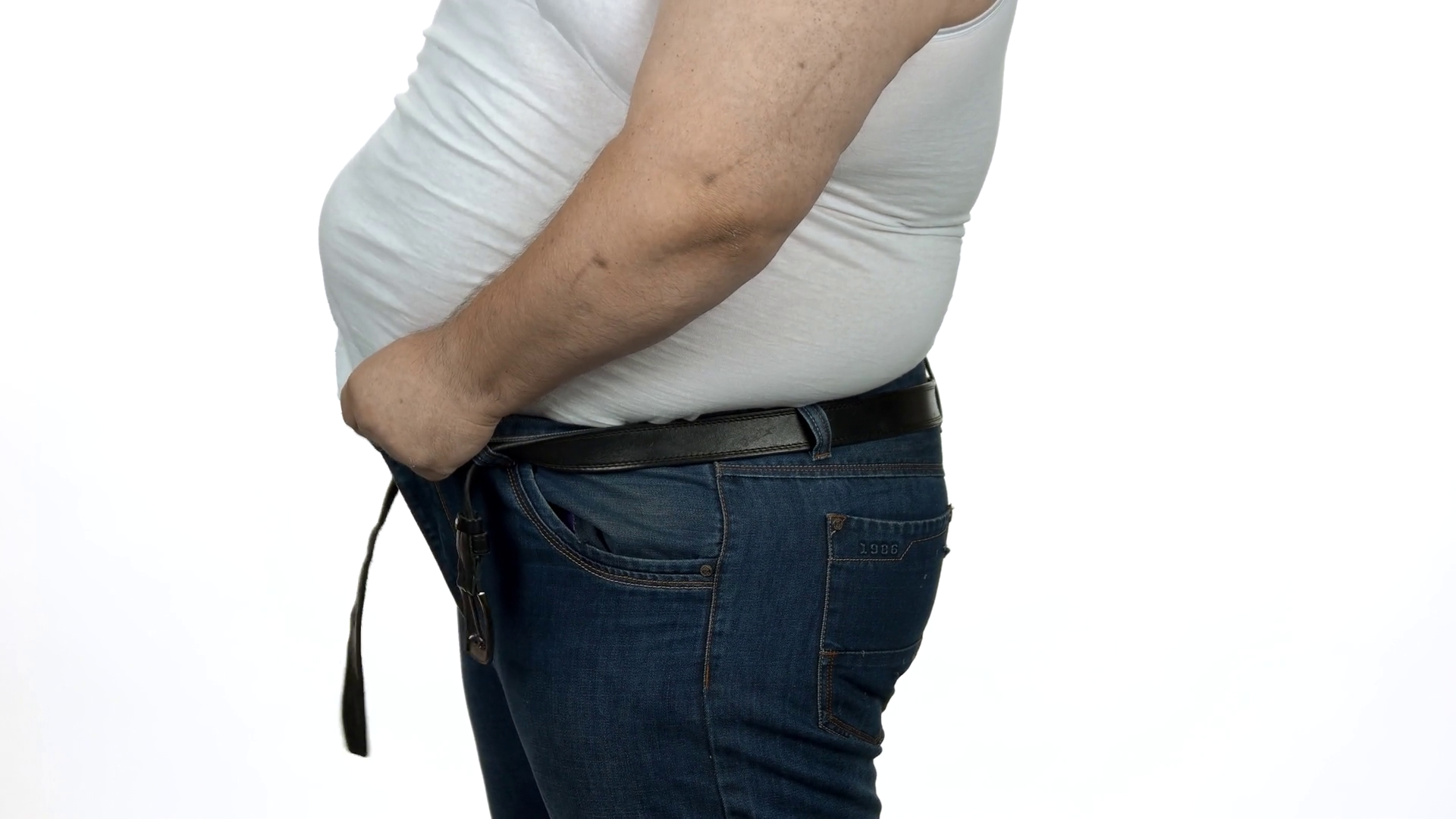 Fat Man Can Not Fasten His Jeans Man With Big Belly Side View Increased Risk Of CancersÂ