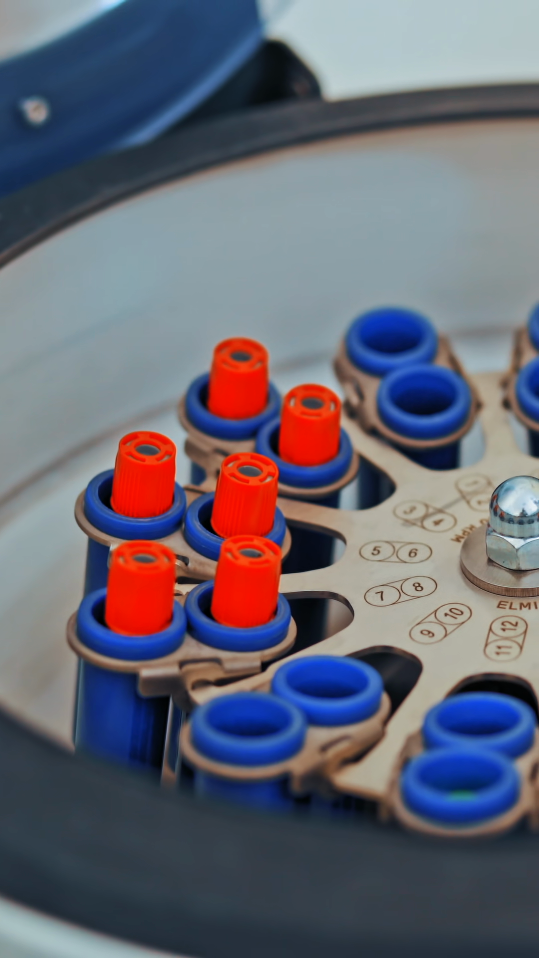 Females Hand In Blue Glove Putting Blood Samples Into A Centrifuge In Laboratory Woman Researcher Is Placing Test Tubes In The Special Machine Vertical VideoÂ