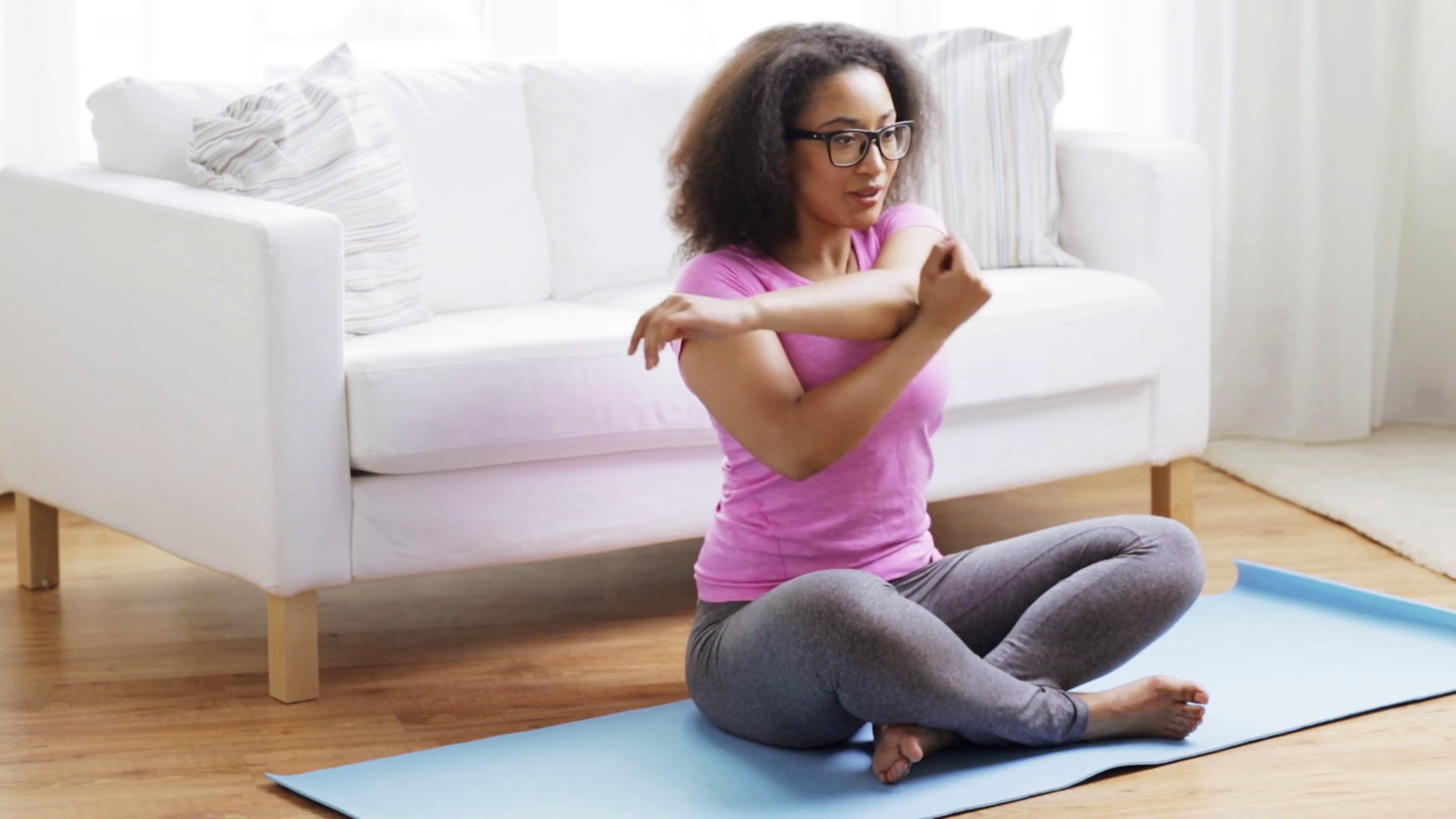 Fitness Sport Yoga Training And People Concept Happy African Woman In Lotus Pose Exercising On Mat At HomeÂ