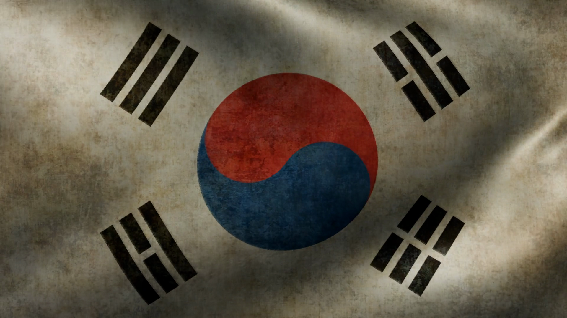 Fluttering Flag Of South Korea With Surface Affected By Use