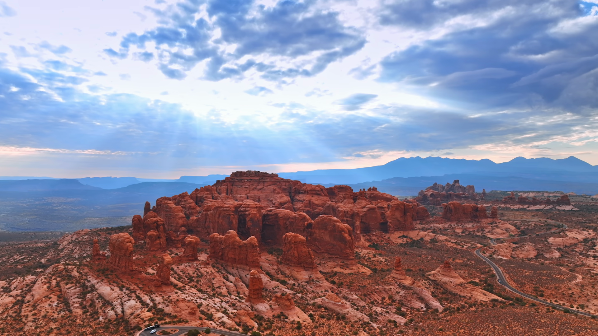Flying Closer To The Red Canyons With Rounded Tops Drone Footage Over The Dry Desert Of The Arches National Park Utah UsaÂ