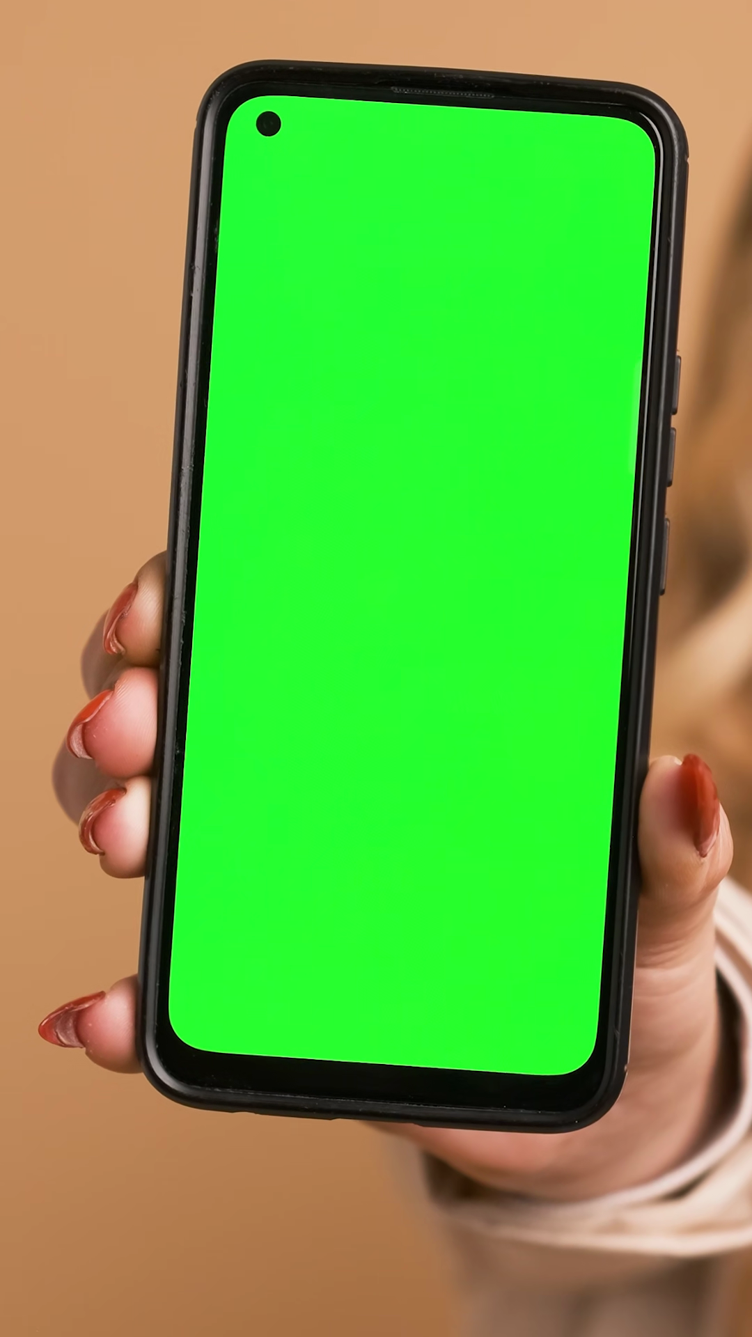 Focus On Smartphone With Blank Green Screen Showing By Transgender Woman Over Beige BackgroundÂ