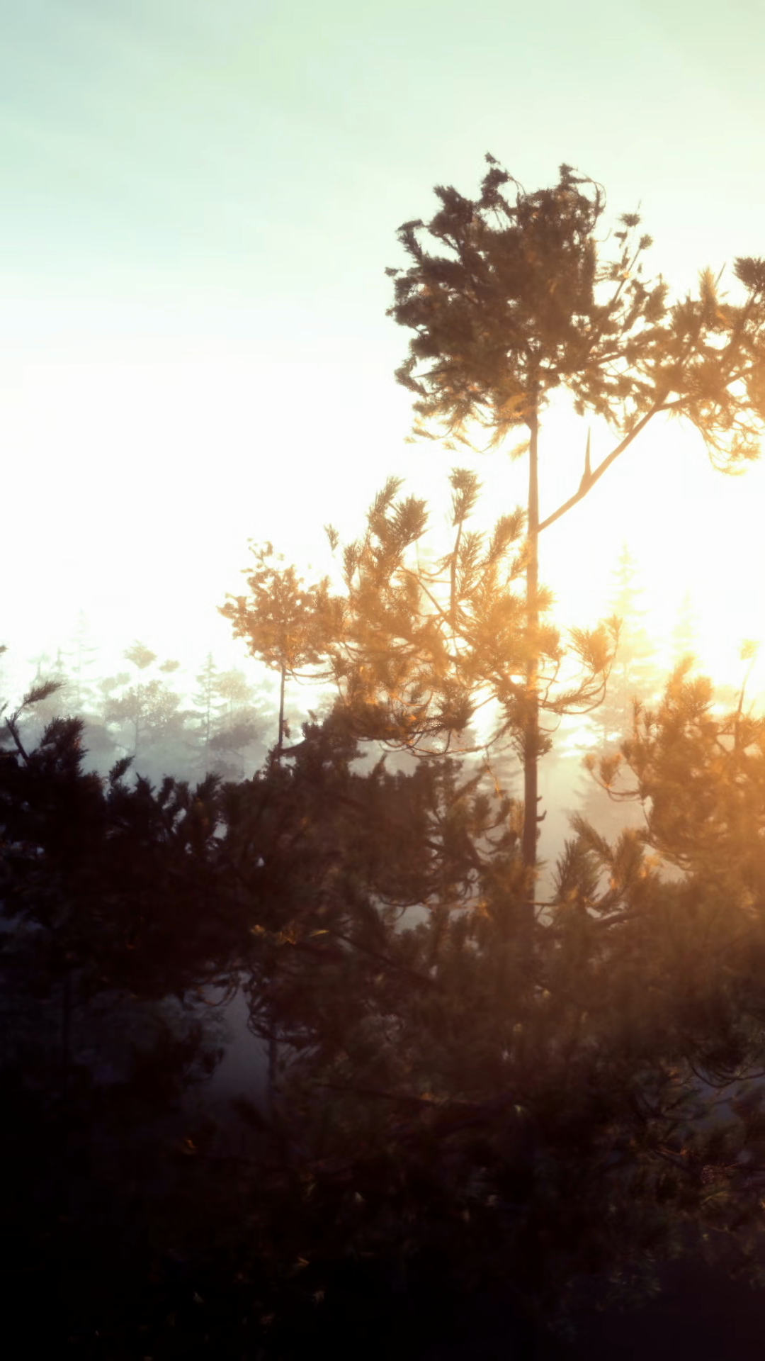 Fog covers trees in ...