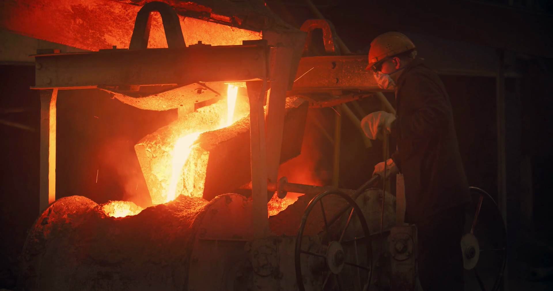 Foundry, a man pours...