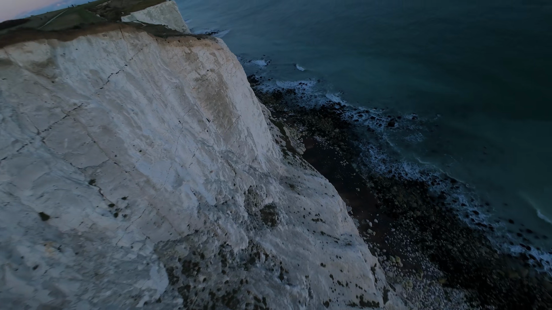 Fpv Drone Flying Along White Cliffs Of Dover Coastline At SunsetÂ