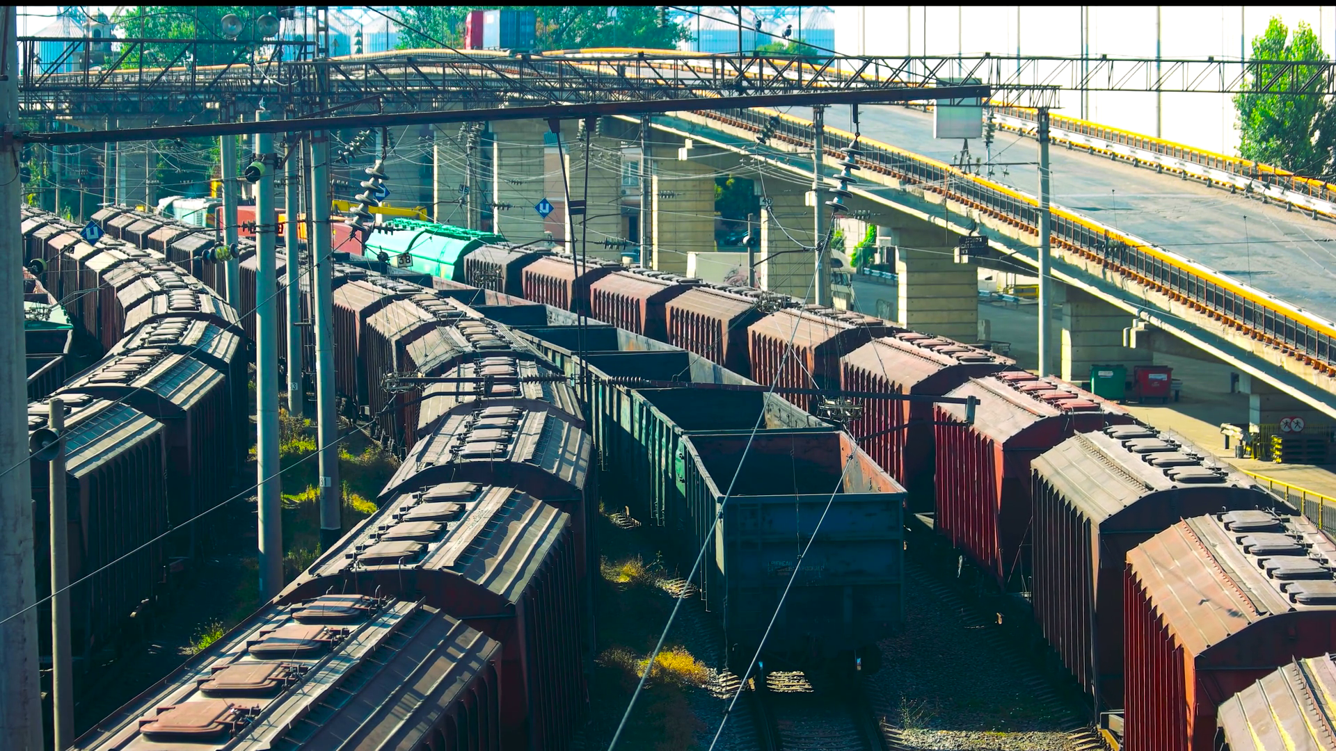 Freight Trains At A Station Aerial View Of Freight TrainsÂ