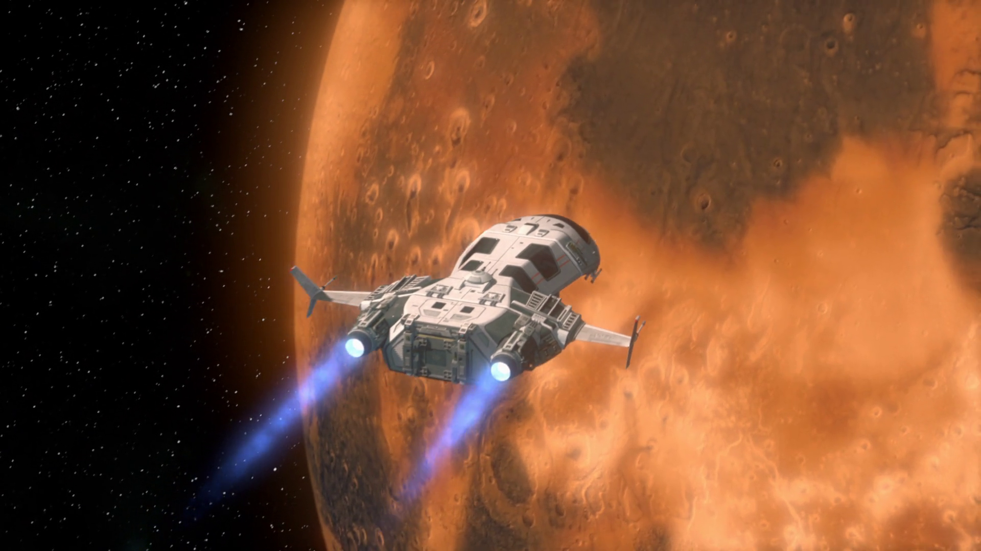 Futuristic Spaceship Arriving At A Planet 30 Fps