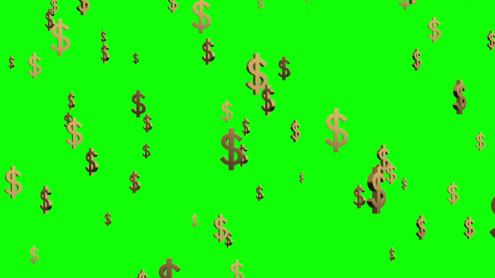 Gold Dollar Signs Falling Or Raining From The Sky Green Screen Seamless Loop