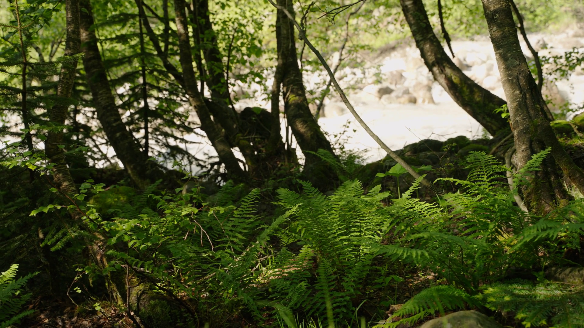 Green Ferns In Svaneti Mountains Forest With Mountain River In Background Rich Plants Flowing Water Create Peaceful Atmosphere PotentialÂ