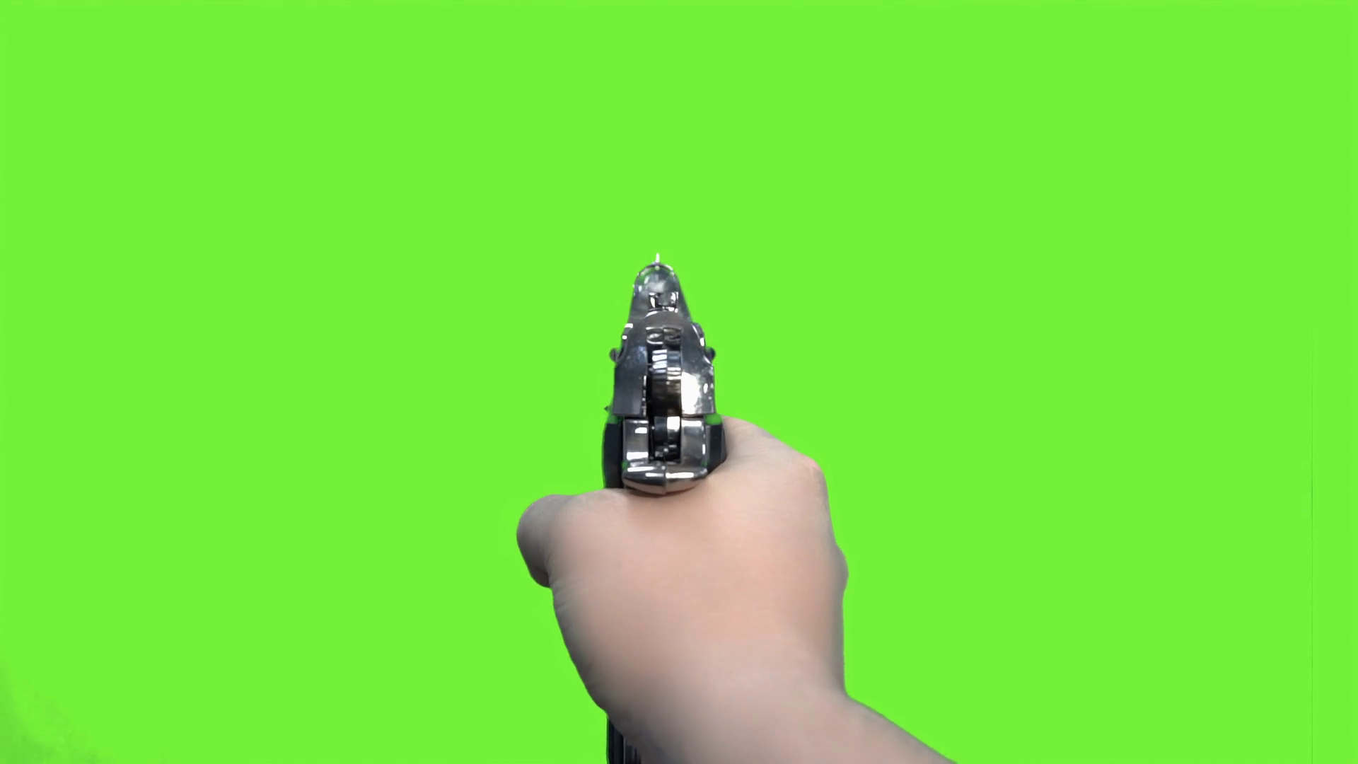 Gun Shot With Flying Bullet On Green BackgroundÂ