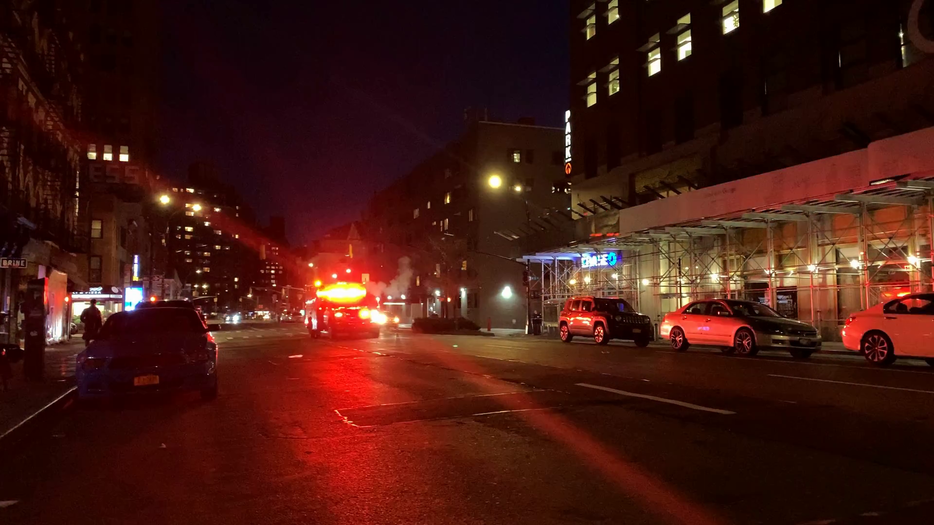 Handheld Ambulance With Lights Rushing Down Empty Nyc Street During Covid19Â