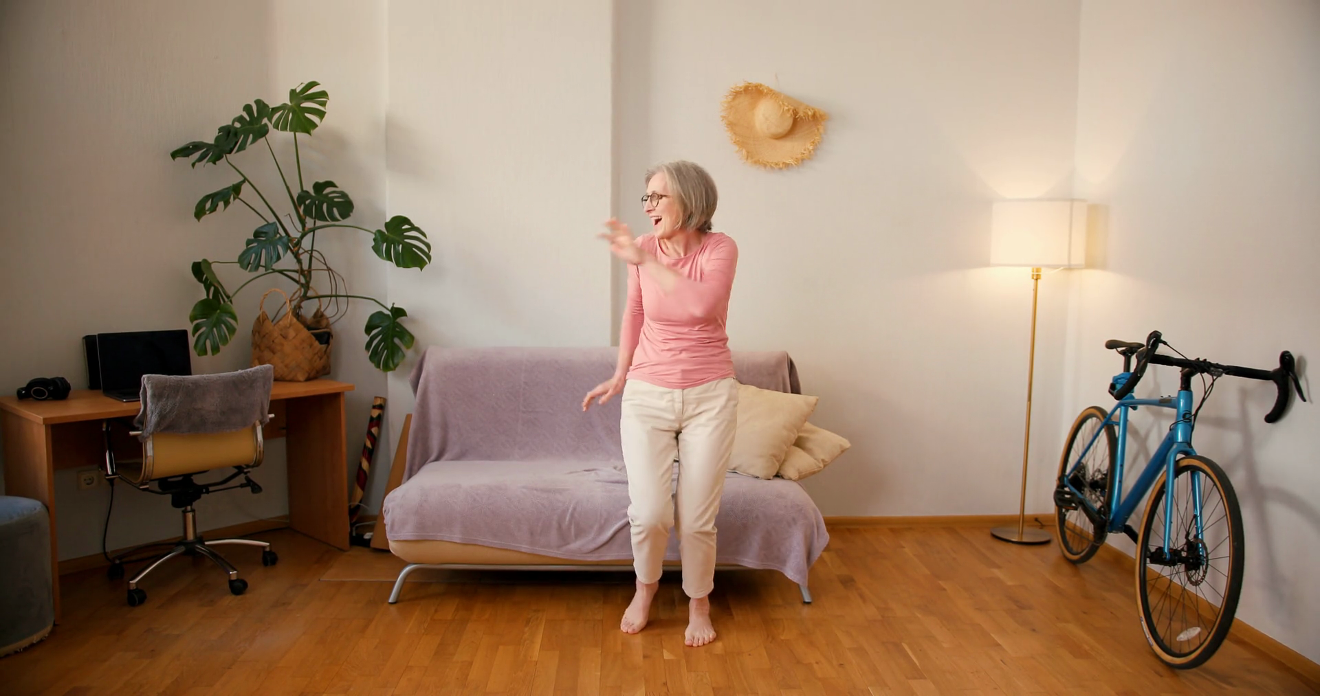 Happy Mature Senior Woman Carefree Dancing At HomeÂ