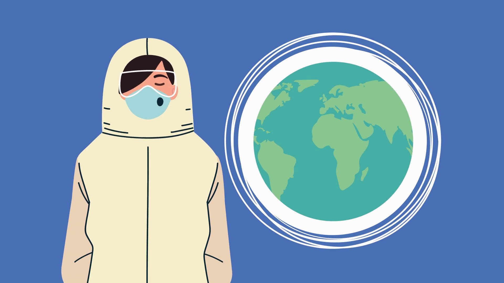 Health Professional With Biosafety Suit And Earth Planet