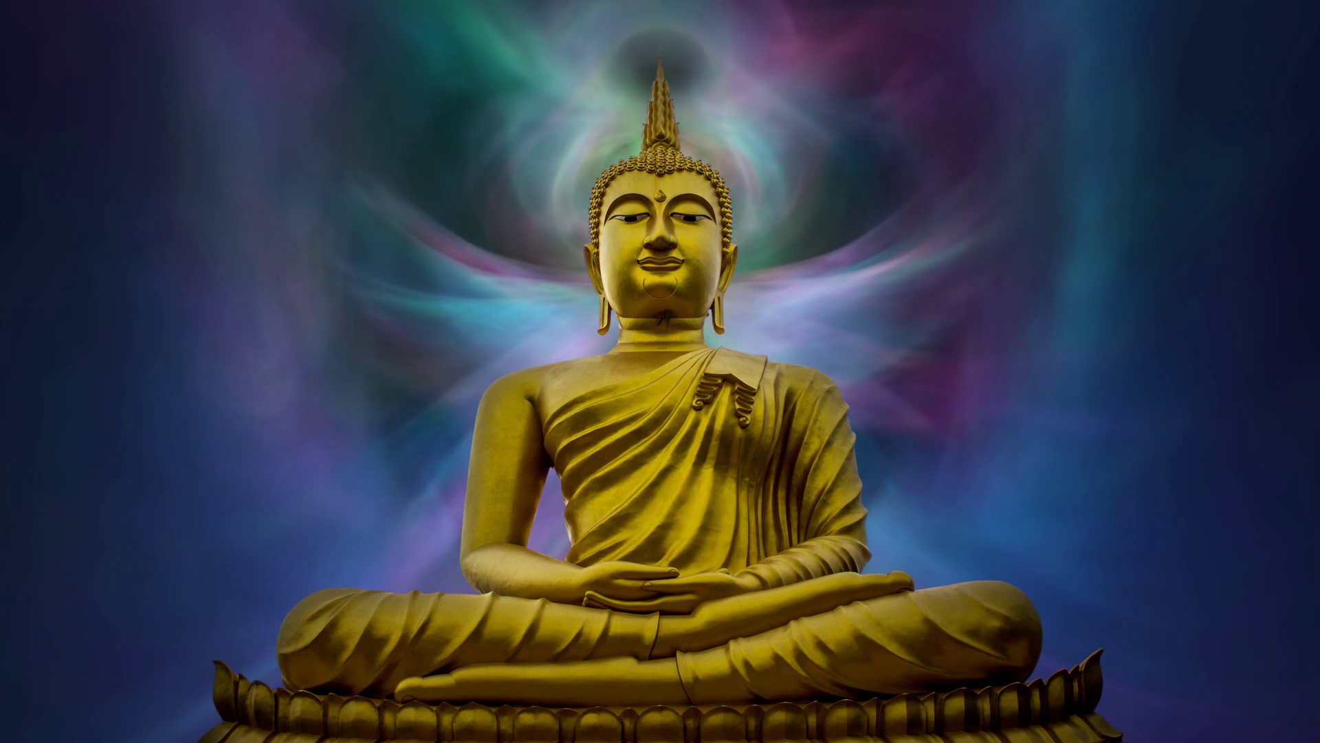 Heavenly Clouds Of Light Swirling Around The Golden Gautama Buddha Seamless Looping