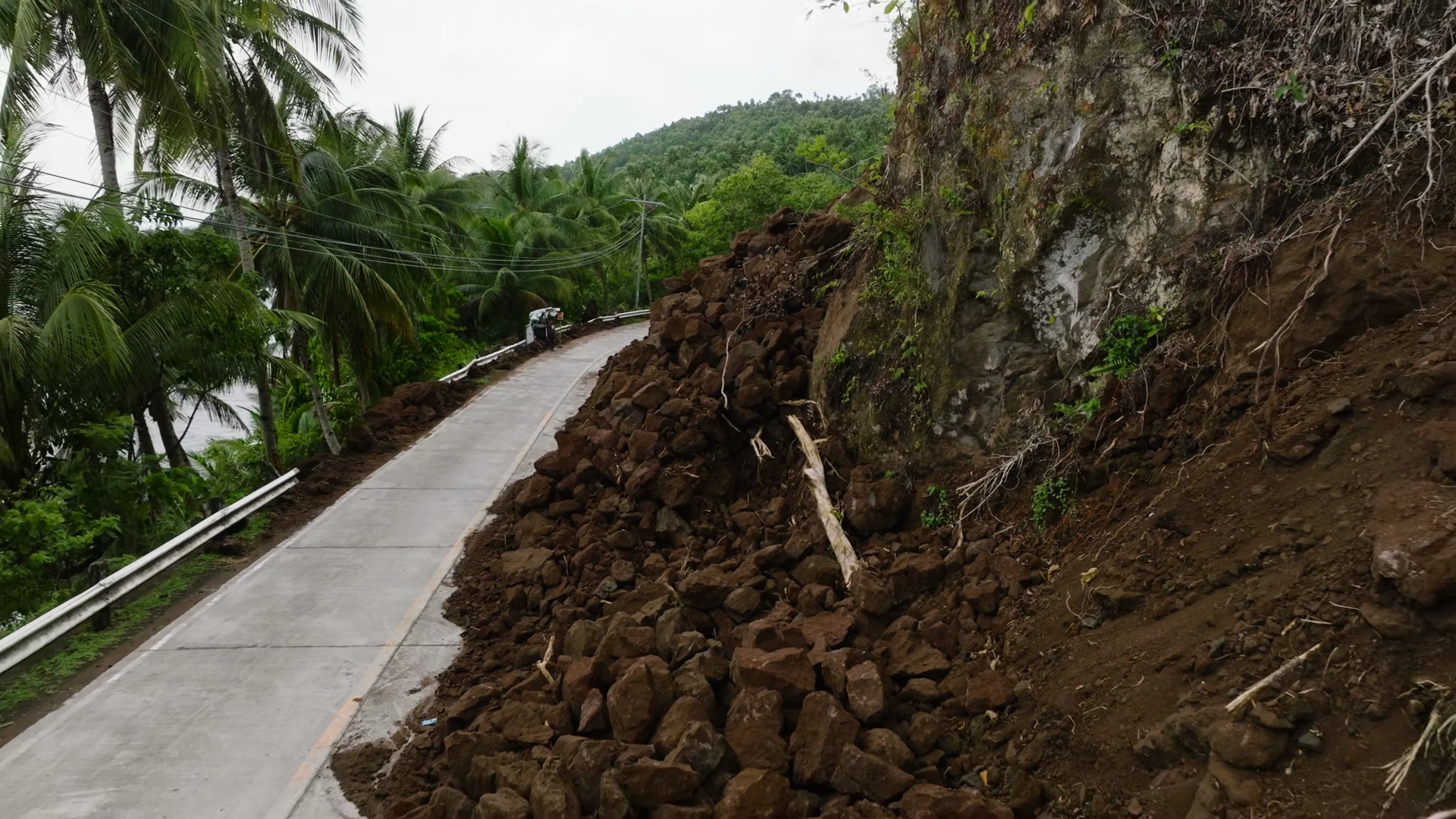 Heavy Rainfall Cause The Landslides That Block The Half Of The Road Camiguin PhilippinesÂ