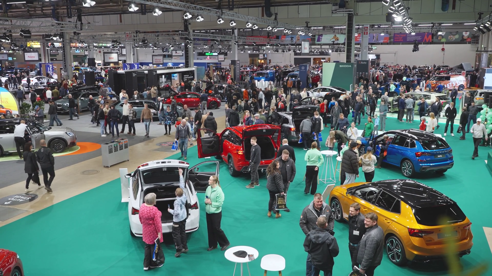 Helsinki Finland March 15 2025 A Crowded Auto Show With People Exploring Various Car Brands And Models In Messukeskus ExpocenterÂ