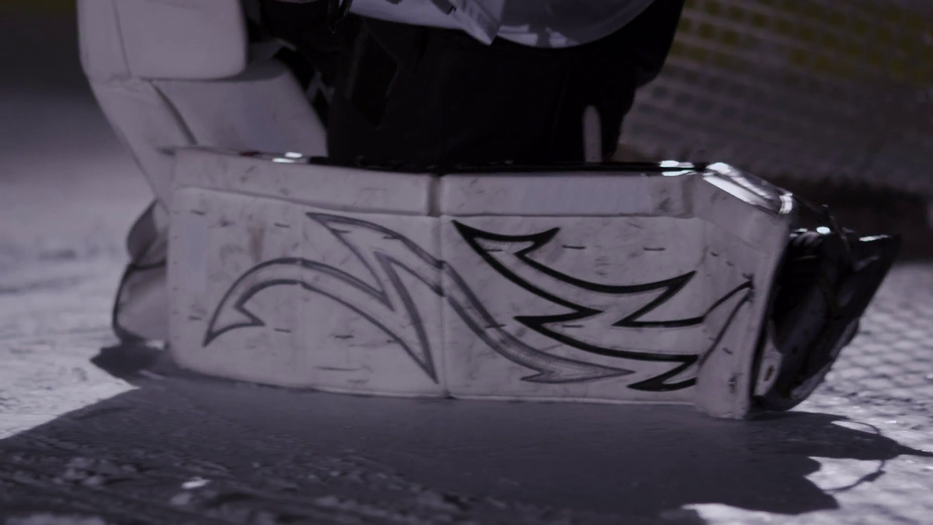 Hockey Player In Dynamic Lighting On The Ice In Arena Goalie In Crease Close UpÂ