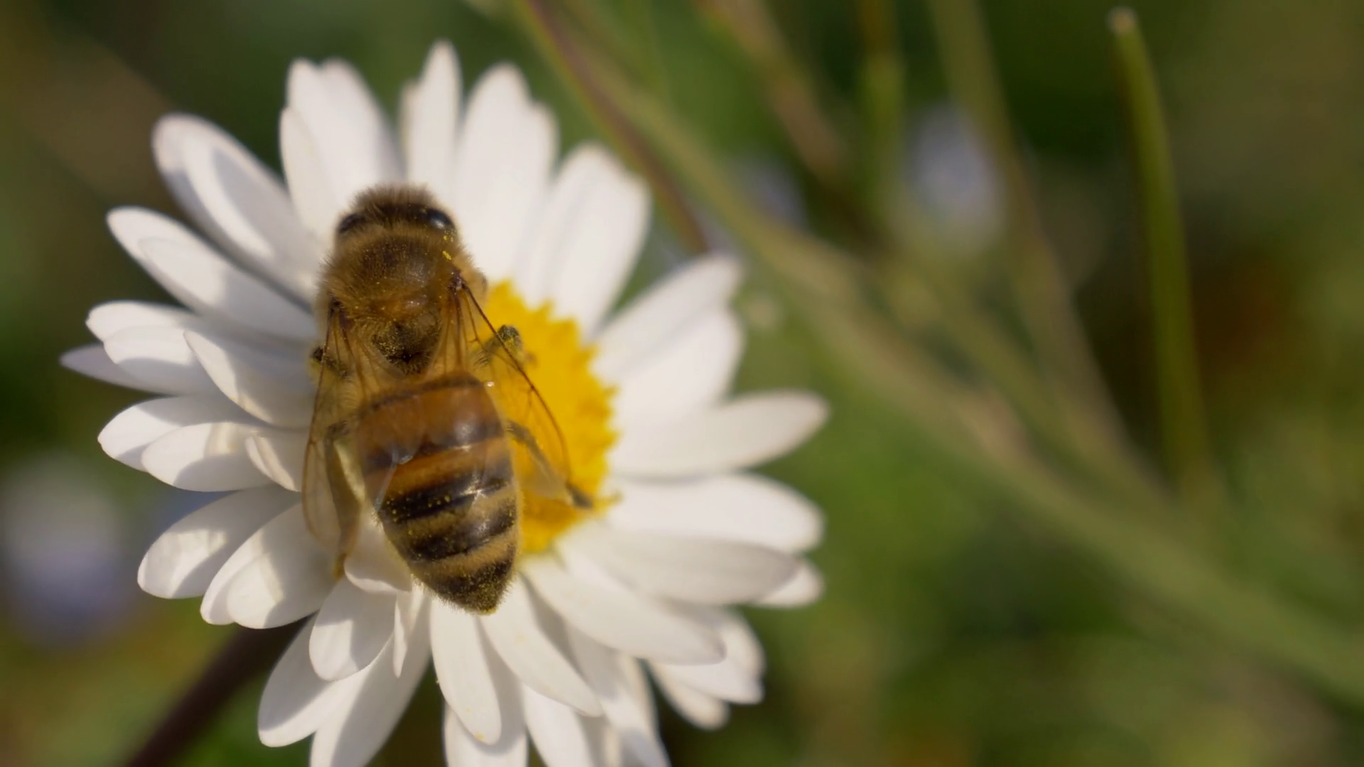 Honey Bee Collecting Nectar On A Daisy Selective Focus Shot With Shallow Depth Of FieldÂ